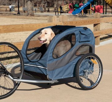 | 36 of 36 people found the following review helpful By T Dabney (Tampa FL USA) - See all my reviews This review is from: Solvit 62341 HoundAbout Bicycle Pet Trailer, Large (Sports) this is a great cart... very well made. strong durable construction. .. very large. holds my 92 lb "Bear" and my 120 lb girlfriend. .. mounts to bike very easily and pulls very smoothly. .. nice to have the extra pockets to put leash and dogbowl. .. in an effort to "go green" we ride our bikes to the grocery store and use this cart to haul the groceries back with us. works amazing for this too. .. one thing everyone should take into play when purchasing any cart would be your dog. consider if your dog will actually go into this thing. this particular cart is very sturdy but a dog that won't enter a kennell cage won't ever consider a cart ride. overall very nice product. would buy again. 30 of 30 people found the following review helpful By Gotta Love Dogs "cll" (MA, USA) - See all my reviews This review is from: Solvit 62341 HoundAbout Bicycle Pet Trailer, Large (Sports) We received this bike trailer yesterday and we were very impressed with how easy it is to set up. I bought the kit to convert it so we can push our dog in it. We have a 75 lb golden retriever who has osteosarcoma (bone cancer)in her front leg and is not able to walk for any great distance so this was just what we needed to take her for those long walks she has always loved. The reason I gave it 4 stars instead of 5 is because the bottom of this trailer is not very stable/sturdy. When she got in it she got very scared because of how warbly it was. My husband will put some kind of board underneath it to stabilize that for her and hopefully this will ease her fear. Other than that we really like it and look forward to many miles of walking with her in it. 27 of 27 people found the following review helpful By Captainbob (Atlanta) - See all my reviews This review is from: Solvit 62341 HoundAbout Bicycle Pet Trailer, Large (Sports) I got my Track'r Large Bike Trailer today, and had it set up and ready to roll in about 10 minutes. As I was was assembling it , which only amounts to attaching the hitch to the rear axle of my bike, snapping the wheels into place and placing a crossbeam in the top rear and tightening, I noticed that it was built very well, and the quality was surprising considering the price. I have a Recumbent bicycle which has 20" wheels and there was some concern that this product might not work with my bike. I called the manufacturer ( Solvit Products), prior to ordering it, and the technical person I spoke to assured me that it would work with my bike, which it did.I installed the mount on my bike in about 2 minutes and I was ready to attach the trailer to the bike. Before I did this, I made my dog comfortable about getting in the trailer by giving her some treats when I called her to jump in. Withing about 5 minutes, she would jump in the trailer on command. Now I hooked it up to... Read more |